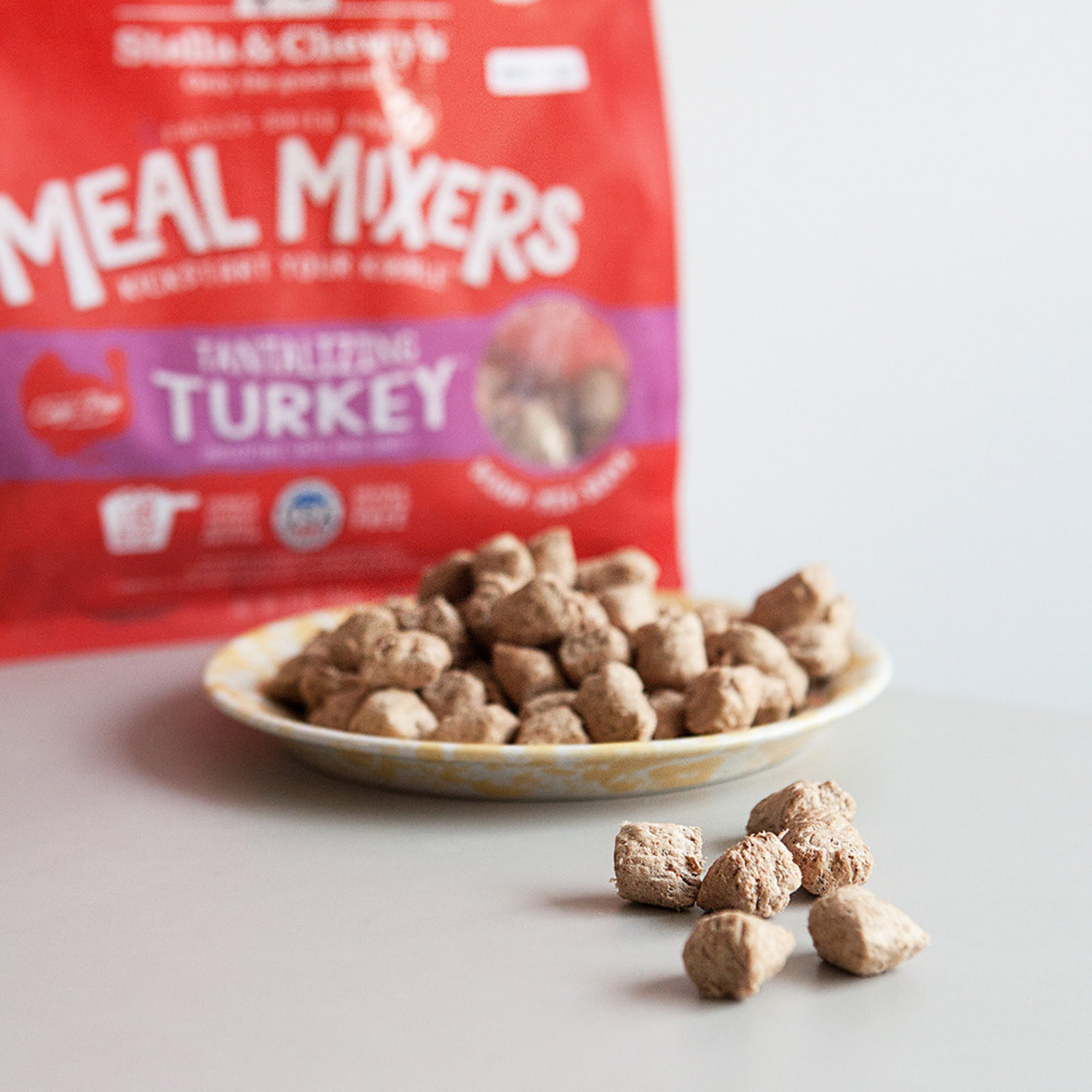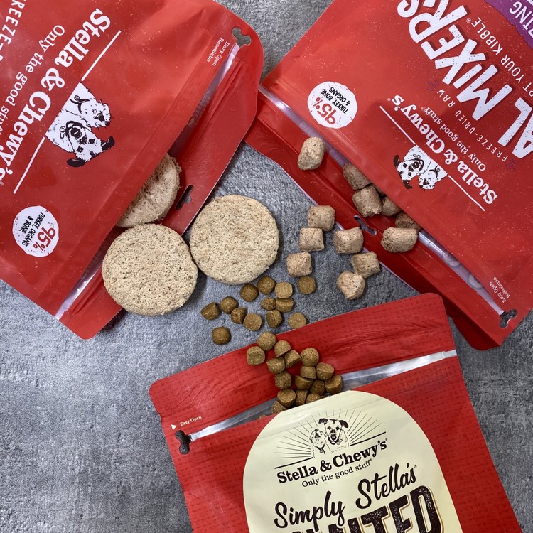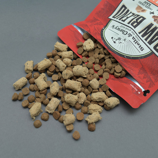 스텔라 앤 츄이스는 동결건조 사료뿐만 아니라, 건사료도 생산합니다. 특이한 점은 건사료의 기호성을 높이기 위해 동결건조 사료가 코팅돼 있다고 합니다. 디너패티나 밀믹서와 마찬가지로, 영양 성분은 똑같습니다. 단, 동결건조 방식이 영양소를 가장 파괴하지 않으면서 본연의 맛을 살린다는 사실!